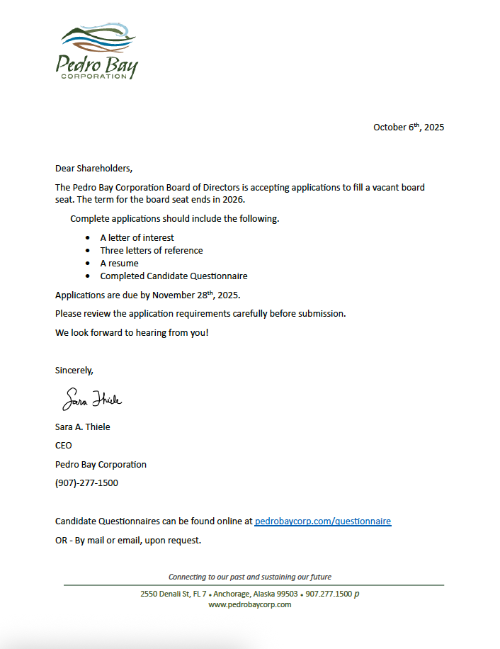 Pedro Bay Corporation Annual Meeting, May 29th, 2021